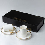 Experience the opulence of the Majestic Gold Espresso Set, a testament to refined taste and sophistication. This set, with its sleek lines and luxurious accents, is perfect for those who relish their espresso in grand style.