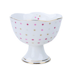 The cup's robust footed base ensures stability, allowing you to savor your tea without the worry of spills, while its gently scalloped edges add a refined touch that's visually pleasing and practical for sipping. The polka dots are not just painted on; they are a testament to the cup's craftsmanship, embedded within the glaze to ensure they last as long as your love for tea.