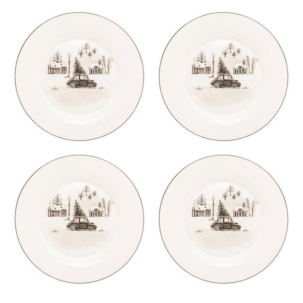 Step into a storybook scene with each use of these enchanting dessert plates. The Wonderland Black Christmas Tree Car Bone China Dessert Plates are designed to capture the heart of the British holiday spirit. The scene on each plate is a snapshot of yuletide bliss, with a nostalgic black car, reminiscent of an old-timey British motor, bringing home the Christmas tree amid a snow-kissed landscape.