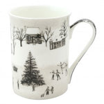 Picturesque Village Scene: The mug features a nostalgic black and white illustration of a quaint village blanketed in snow, complete with cozy cottages and a grand central pine.